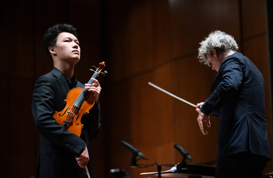 11月27日晚,在上海音乐学院建校98周年音乐会上,章奥哲登台,与张国勇执棒的上海音乐学院交响乐团演绎了帕格尼尼《D大调第一小提琴协奏曲》第一乐章。17岁的他,展现出一种超出年龄的沉稳,以及对音乐极强的掌控力。