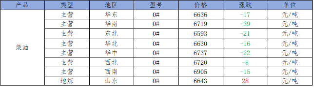 预计下一工作日主营柴油价格继续下跌;地炼厂柴油企稳盘整。