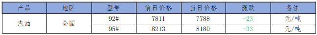 主营柴油:原油下跌,利空影响,今日主营柴油价格弱势走跌。后期原油价格预计区间震荡,国内零售限价或上调,消息面指引一般。局部地区台风天气仍对部分区域工程基建开工呈抑制作用,柴油需求未见明显回升,叠加近期市场面利空因素较多,柴油价格持续走跌。