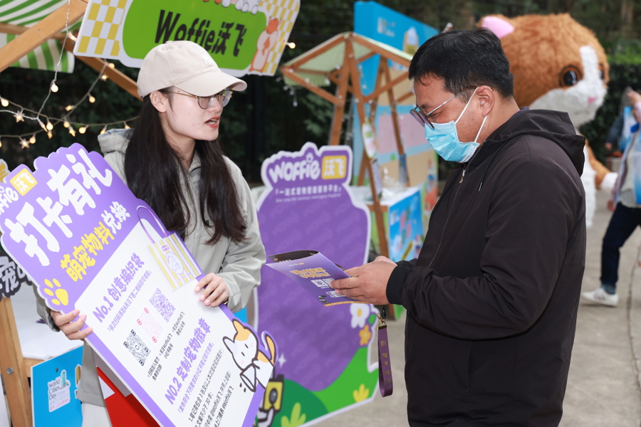 作为活动的另一核心,Pet Park萌宠派对的体验之旅同步开启。在哈基米签到处,居民们在成人视角、1米儿童视角和50厘米宠物视角三种不同高度的倡议墙上签名,寓意文明养宠需要全社会共同践行。萌宠贴贴角成为最受欢迎的社交空间,配备完善的宠物补给区、休息区和便便箱,处处彰显着城市的温度与关怀。